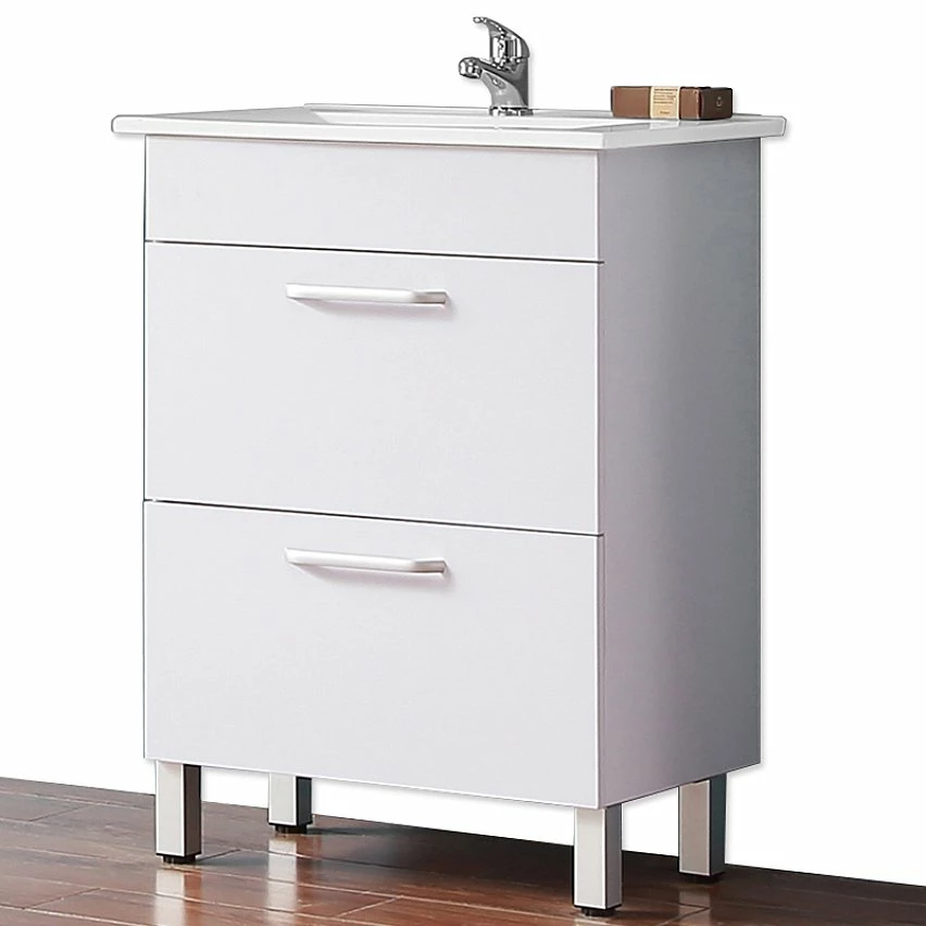 1 meuble en mdF + 1 plan vasque (Robinetterie, vidage et siphon non inclus.)