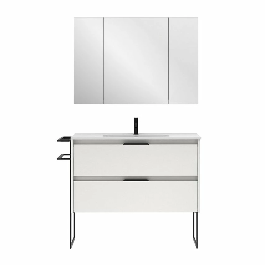 Sortie 🎉 Amizuva Ensemble de meuble, vasque et miroir KEIKO avec deux tiroirs H.56,5 x L.100 x P.46 , effet blanc brillant ❤️