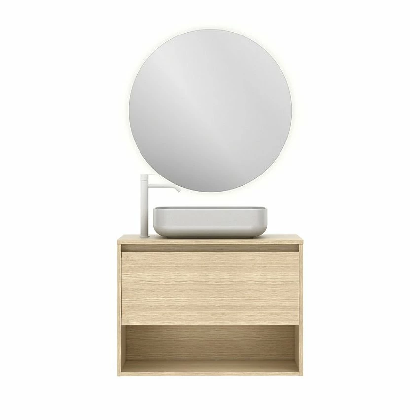 Meilleur prix 💯 Amizuva Ensemble de meuble, vasque et miroir NIWA TOP avec un tiroir et un niche H.56,5 x L.80 x P.46 , effet Chêne sablé 🤩