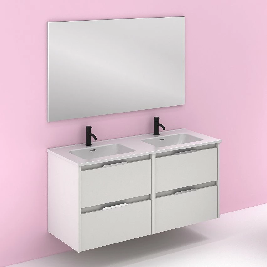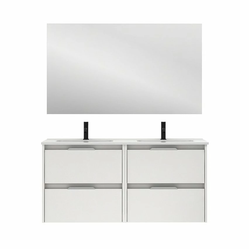 Acheter 🥰 Amizuva Ensemble de meuble, vasque et miroir SUKI avec quatre tiroirs H.56,5 x L.120 x P.46 , effet blanc brillant 👏