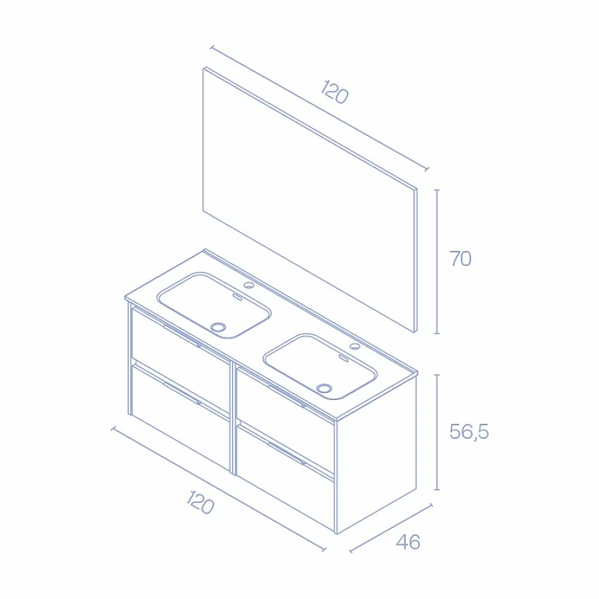 Les meilleures critiques de 😀 Amizuva Ensemble de meuble, vasque et miroir SUKI avec quatre tiroirs H.56,5 x L.120 x P.46 , effet Gris sablé ❤️
