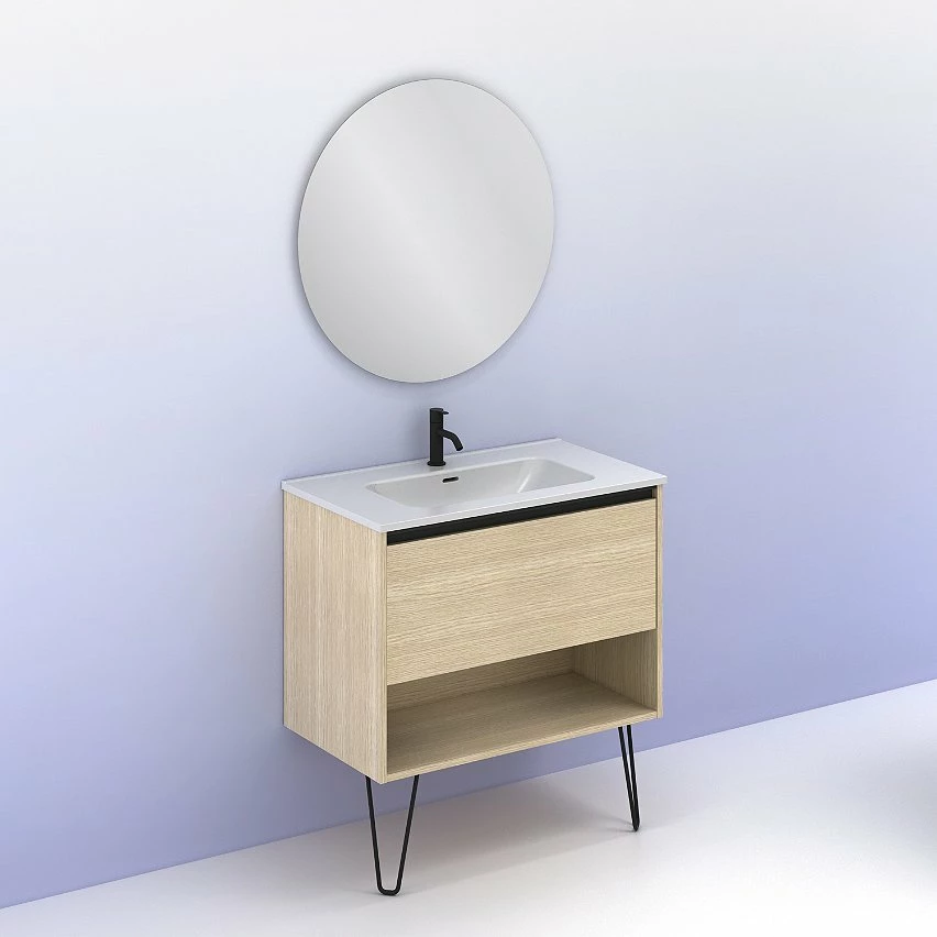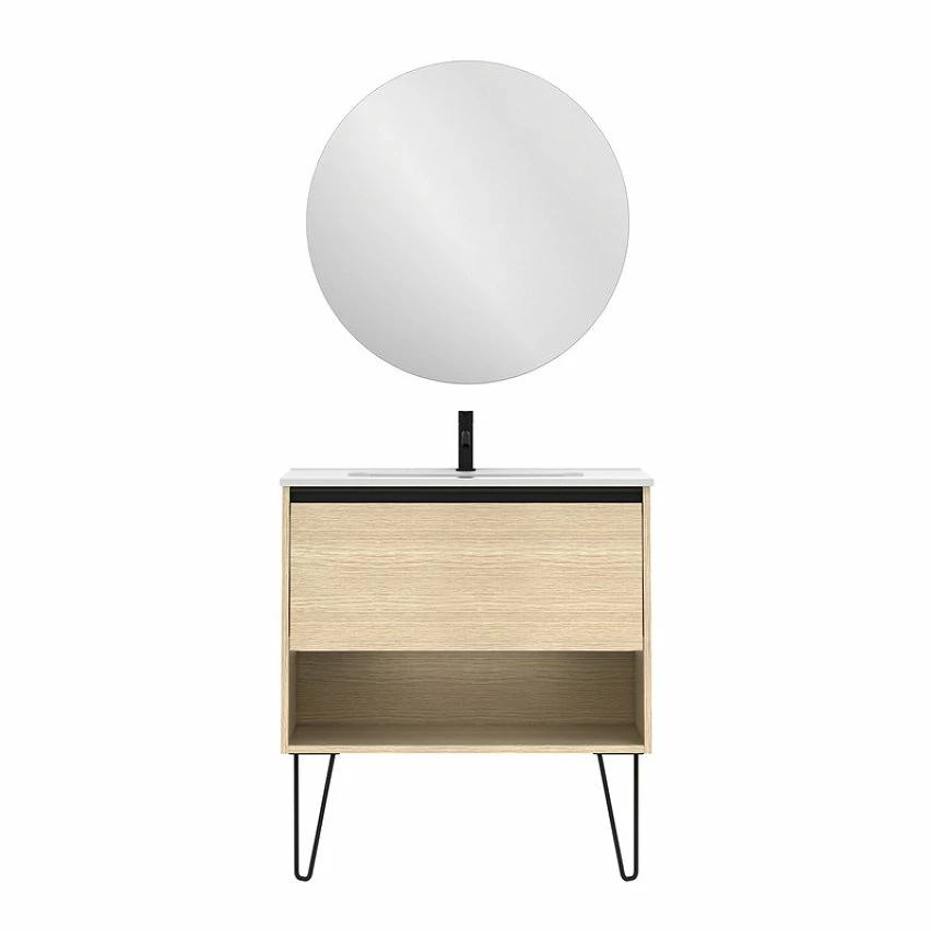 Vente flash 🤩 Amizuva Ensemble de meuble, vasque et miroir YOKO avec un tiroir et un niche H.56,5 x L.80 x P.46 , effet Chêne sablé ⭐
