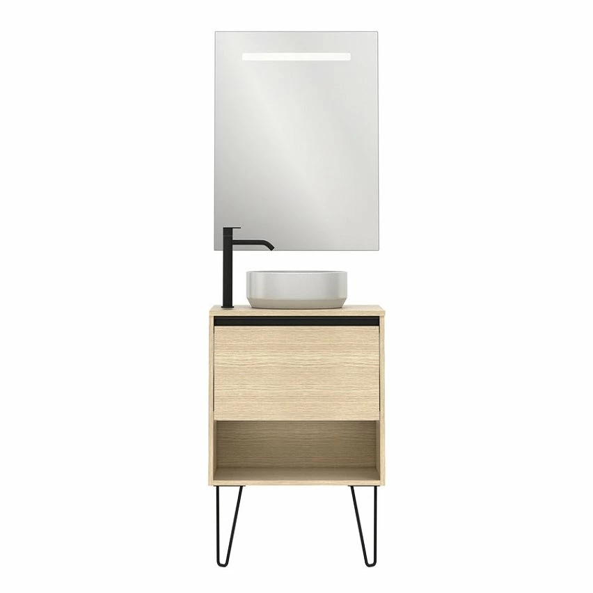 Top 10 đ Amizuva Ensemble de meuble, vasque et miroir YOKO TOPavec un tiroir H.56,5 x L.60 x P.46 , effet ChĂȘne sablĂ© â