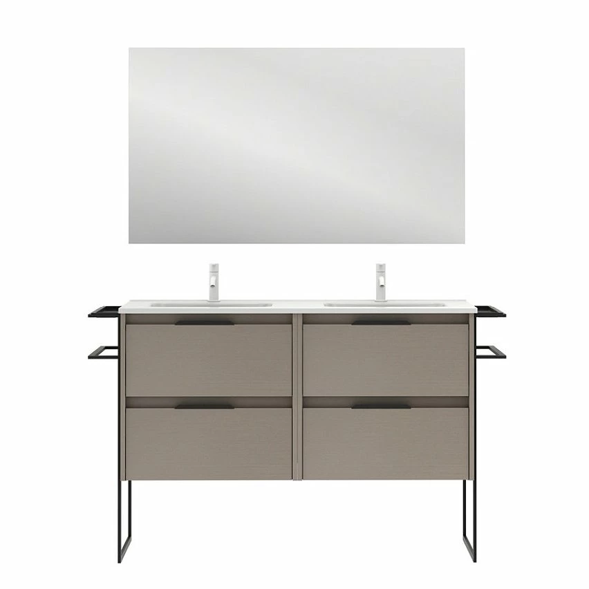 Acheter ✨ Amizuva Meuble double vasque KEIKO avec quatre tiroirs H.56,5 x L.120 x P.46 , effet Fumé sablé | Il comprend la vasque en céramique 🌟