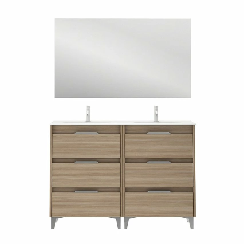Coupon 👏 Amizuva Meuble double vasque SUKI avec six tiroirs H.74 x L.120 x P.46 , effet noyer sablé | Il comprend la vasque en céramique 😀