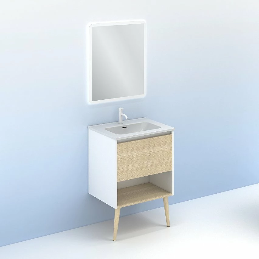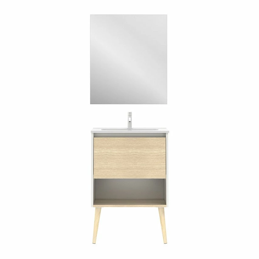 Les meilleures critiques de 👏 Amizuva Meuble simple vasque NARA avec un tiroir et un niche H.56,5 x L.60 x P.46 , effet Blanco Mate/ Chêne sablé | Il comprend la vasque en céramique 😍