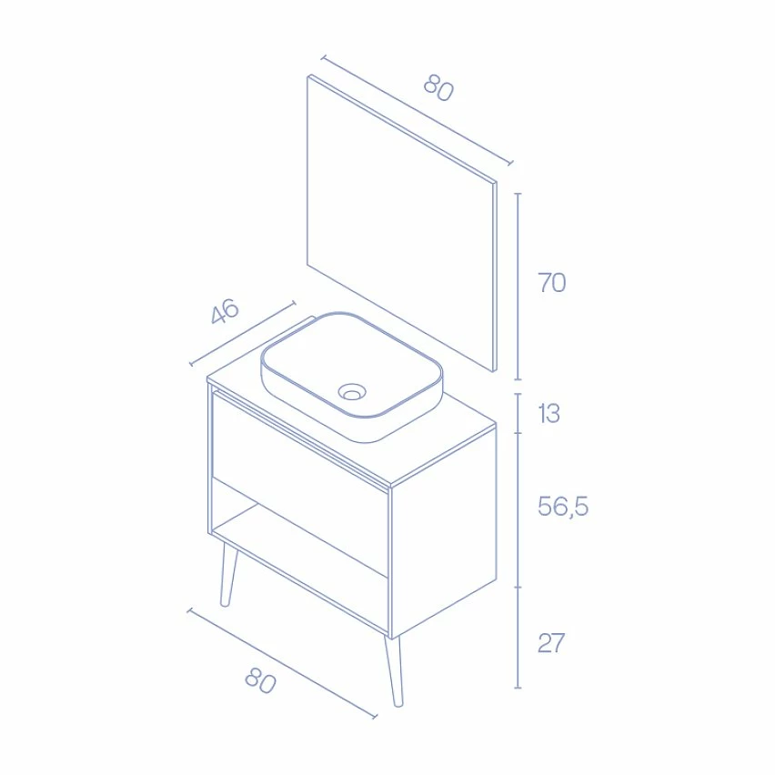 Meilleur prix ⌛ Amizuva Meuble simple vasque NARA TOP avec un tiroir et un niche H.56,5 x L.80 x P.46 , effet Blanco Mate/ Chêne sablé | Il comprend la vasque en céramique 🤩