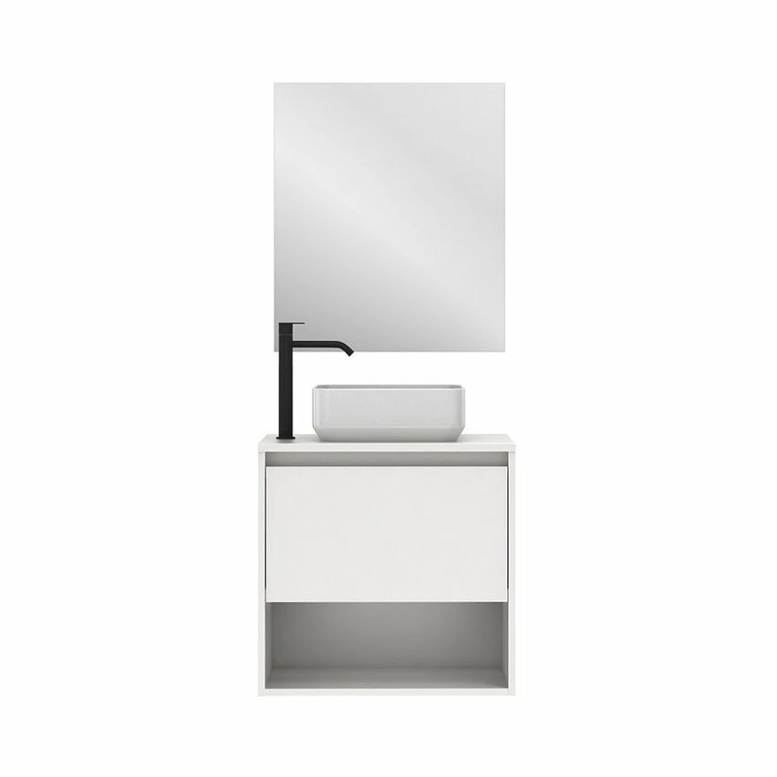 Le moins cher 🧨 Amizuva Meuble simple vasque NIWA TOP avec un tiroir et un niche H.56,5 x L.60 x P.46 , effet blanc brillant | Il comprend la vasque en céramique 😀