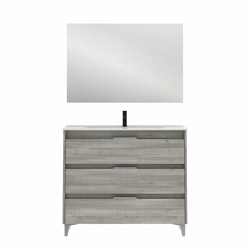 Budget 🧨 Amizuva Meuble simple vasque SUKI avec tris tiroirs H.74 x L.100 x P.46 , effet Gris sablé | Il comprend la vasque en céramique ✔️