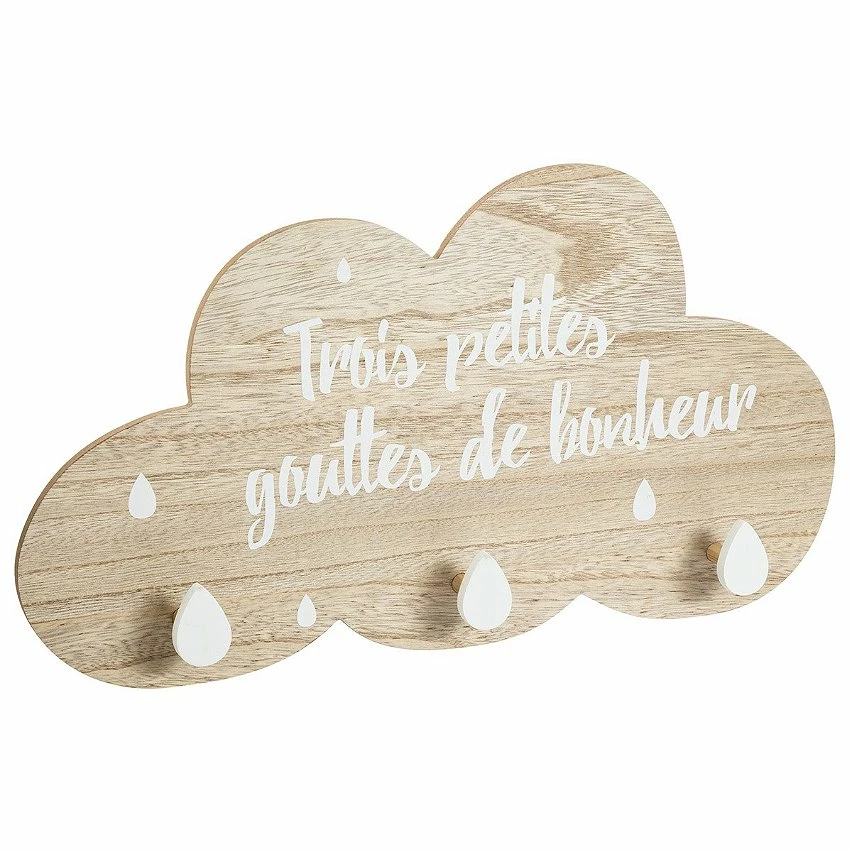 Un très joli concept et tellement utile que cette patère nuage bonheur avec ses 3 crochets pour enfant. Ce nuage avec ses 3 crochets en forme de gouttes de pluie est accompagné du message « Trois petites gouttes de bonheur ».