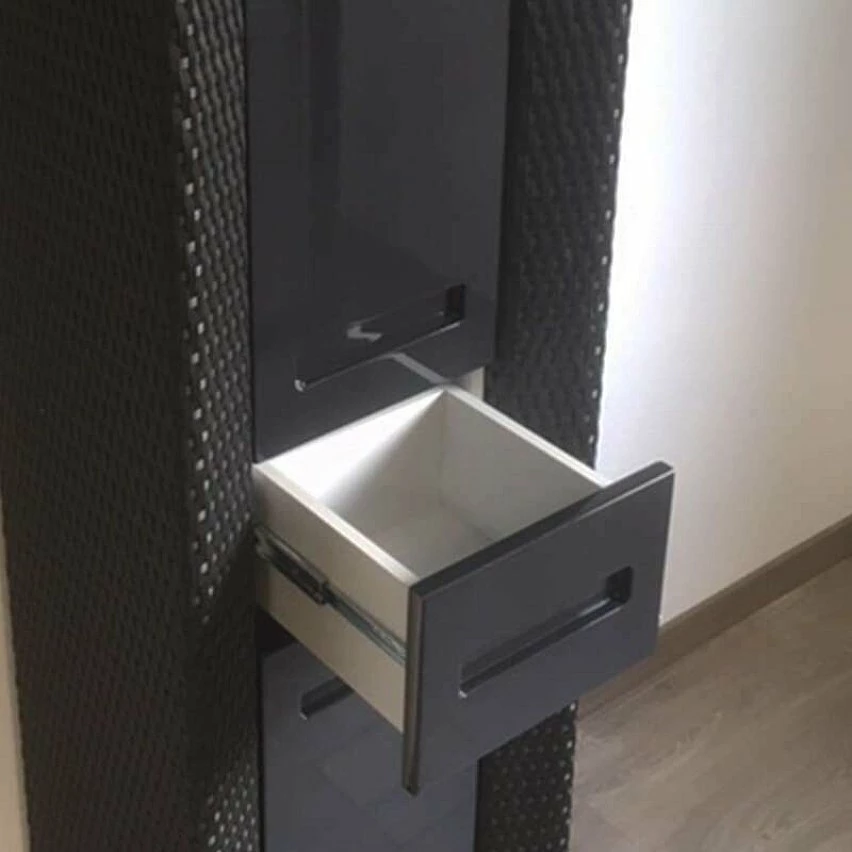 Très fonctionnelle, elle allie rangement et esthétique. Elle se compose de deux portes réversibles et d’un tiroir avec plusieurs étagères.