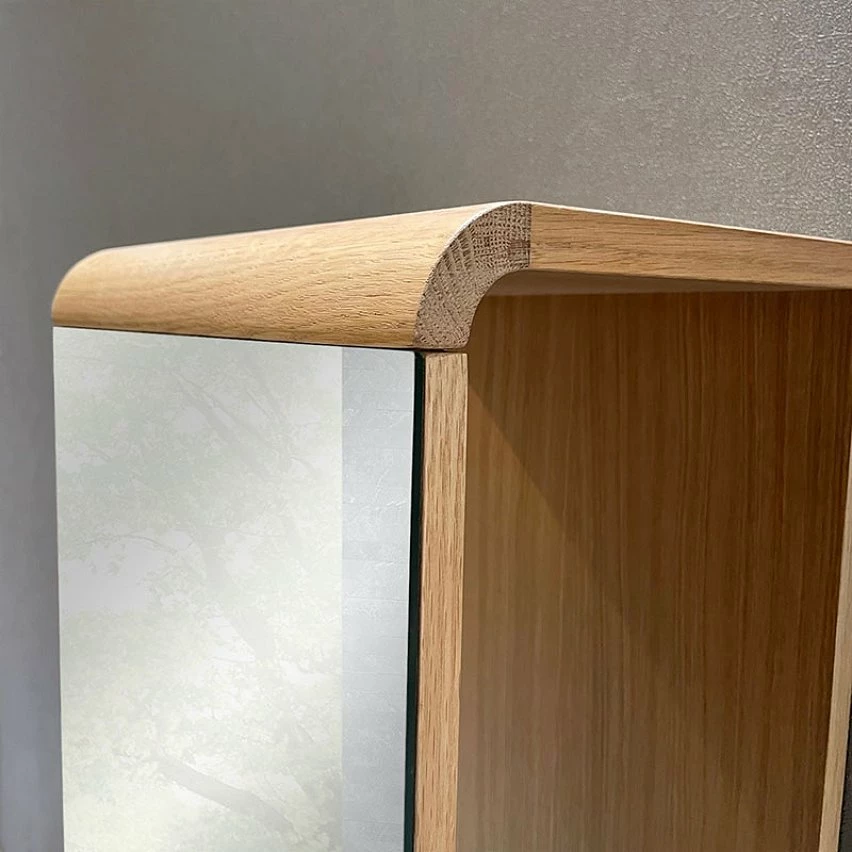 Sa conception se compose de MDF d’une épaisseur de 15mm ainsi que d’un placage en chêne ayant une épaisseur allant de 0.6 à 2mm.
