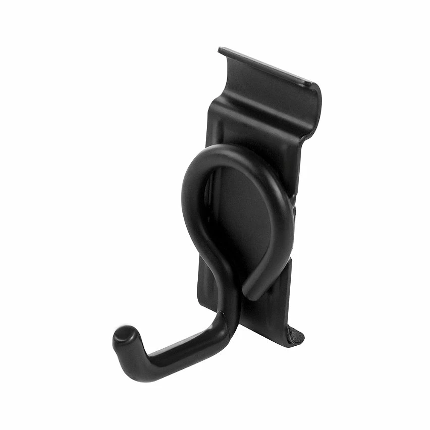 Ce crochet en métal avec revêtement antiglisse se clipse d’un geste sur la grille murale ou sur une crémaillère Walltech. Le système Walltech permet de profiter des murs pour organiser des rangements pratiques et accessibles sans empiéter sur l’espace au sol. Particulièrement adapté au rangement des pièces techniques comme la cuisine, le garage ou la buanderie, Walltech facilite l’organisation de la maison au quotidien. Selon la pièce dans laquelle vous installerez votre espace de rangement Walltech, ce crochet double incurvé vous permettra de suspendre la table à repasser, des outils ou des objets volumineux puisqu’il peut supporter jusqu’à 25 kg.