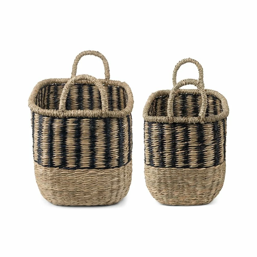 Ces 2 beaux paniers permettent de ranger la maison d’une façon naturelle et très décorative. Appréciez le mix réussi du tressage un peu brut et du motif géométrique noir sur fond naturel. C’est ce qui fait toute la personnalité des paniers de rangement Romy.