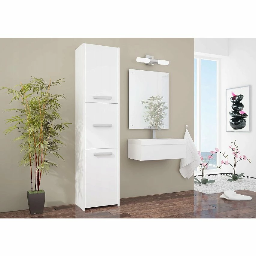 Dans chaque salle de bain, il y a des choses qui ont besoin de leur rangement. Simple et élégante à la fois, la colonne MOSTAR apportera une touche moderne dans votre salle de bain. Sa structure est fabriquée en panneaux de particules mélaminés de haute qualité. Elle se compose de 3 portes comprenant chacune un espace de rangement. Avec son design fonctionnel et simple elle s’adaptera dans n’importe quel style; POINTS FORTS: Moderne et fonctionnelle; 3 portes; Nombreux rangements; Poignées modernes en plastique; Fabrication haute qualité; Finition mat; CARACTÉRISTIQUES TECHNIQUES: Dimensions: 170x30x30cm; Structure en panneaux de particules mélaminés; Chant PVC garantissant la durabilité; Meuble à monter soi-même à l’aide de la notice fournie; Fabriqué en Europe; Facile d’entretien, Photos des articles le plus fidèle possible, mais restant non contractuelles, les nuances de couleur et le rendu des matières présentés à l’écran pouvant être différents de la réalité