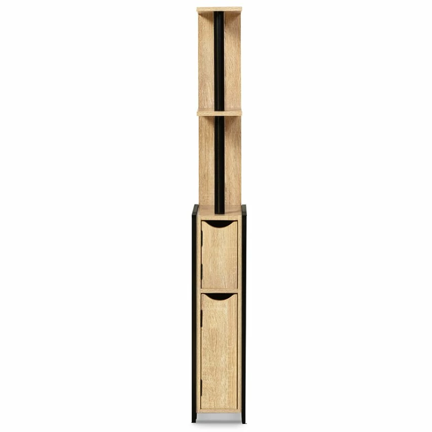 Descriptif du meuble WC 2 portes avec étagères DETROITDonnez un effet industriel et optimisez le rangement de votre pièce d’eau avec notre meuble WC DETROIT 2 portes avec étagères. Son style moderne et ses lignes sobres créeront une ambiance chaleureuse et un esprit « factory » très tendance !Le mélange entre le coloris naturel du bois et le noir de sa structure en métal apportera une touche industrielle pour un esprit loft à votre intérieur.Spécialement pensé pour aménager les petits espaces comme des toilettes, une salle de bains ou une buanderie, ce meuble DETROIT maximisera le rangement de votre pièce tout en vous permettant de gagner en surface au sol grâce à ses dimensions ultra compactes. Ses 3 étagères (composées de 2 tablettes) et ses 2 placards confèrent à ce meuble au design urbain plein d’atouts de rangement ! Dans les 2 placards, vous pourrez ranger en toute discrétion vos produits les moins esthétiques comme les rouleaux de papier toilette, les produits d’entretien…La matière et la couleur des étagères en particules de bois (PB épaisseur 1,2 cm) lui apportent une véritable authenticité. La structure du meuble, en métal noir (épaisseur des tubes 1,6 cm x 1,6 cm), lui apporte stabilité et solidité. Ce nouveau modèle au design industriel bi-matière bois et métal est LA solution pour tout ranger à portée de main même dans les petits espaces et apporter une vraie touche déco à votre intérieur !Dimensions meuble WC 2 portesDimensions globales : Longueur 18 cm x largeur 30 cm x Hauteur 119 cmDimensions des 2 compartiments fermés :Placard du haut : Longueur 12,5 cm x largeur 29 cm x Hauteur 19 cmPlacard du bas : Longueur 12,5 cm x largeur 29 cm x Hauteur 36,5 cmRetrouver l’ensemble de nos meubles WC ainsi que notre collection d’ameublement industrielle sur notre boutique en ligne !