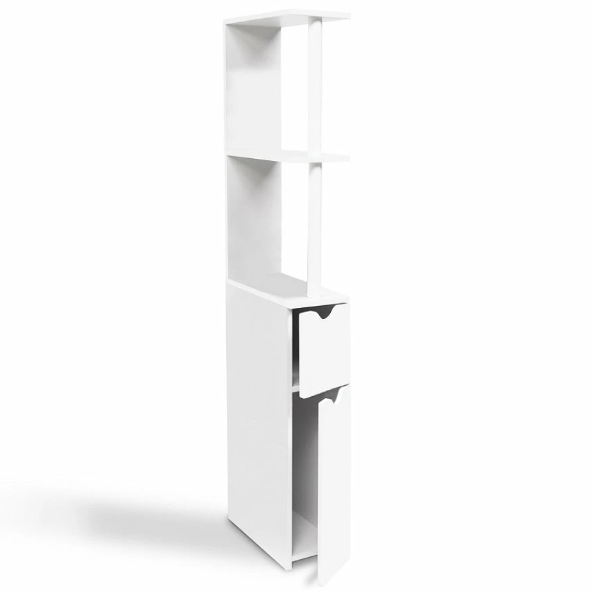 Optimisez votre rangement dans vos WC ou salle de bain grâce à ce meuble très compact en bois mélaminé tout blanc.Dimensions : largeur 15,2 cm x profondeur 29,8 cm x hauteur 118 cm, 2 portes à l’avant + 3 niveaux (avec 2 étagères), partie inférieure 2 placards 1 grand + 1 petit pour une grande capacité de rangement.Coloris blanc5 coloris disponibles sur notre boutique en ligne pour ce modèle 2 portes: BLEUHETREBLANCGRIS