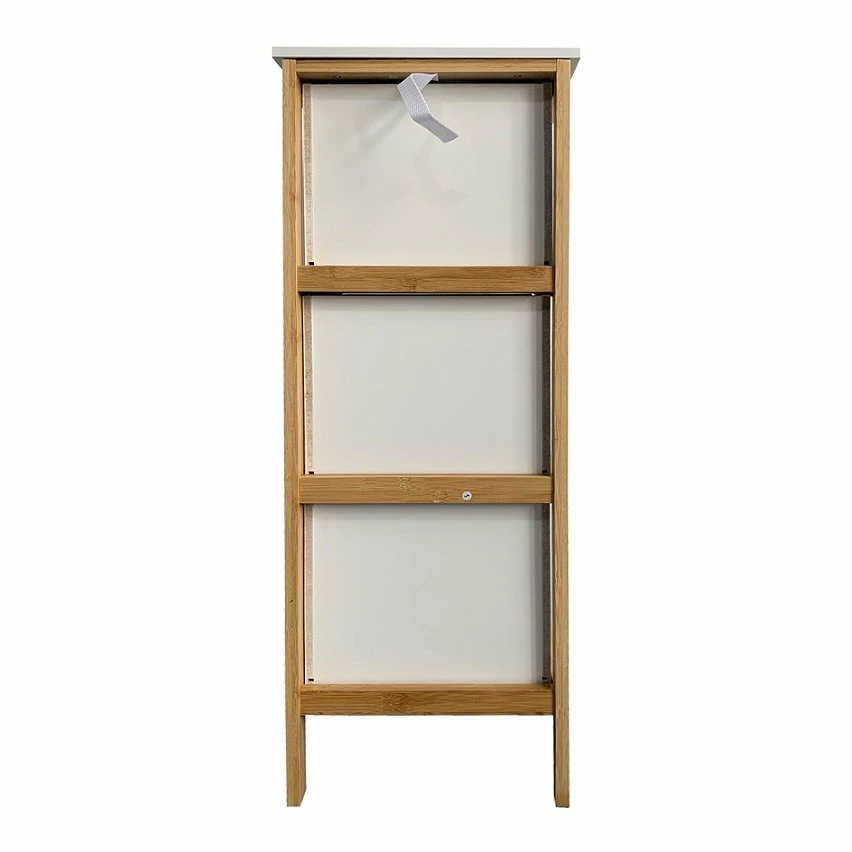 – SPÉCIFICATIONS : Dimensions : H 86 x L 32 x P 30 cm – Dimensions des tiroirs : H 21,5 x L 27 x P 26 cm – Couleur : Blanc, Marron – A assembler. Kit de montage et instructions inclus – Matériau : MDF e1, Bambou – Code RE6713