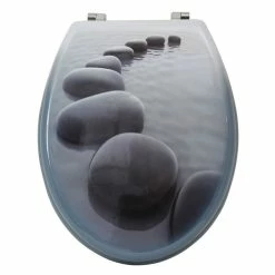 Offres ❤️ MSV Abattant WC MDF CHEMIN DE GALETS Gris – Charnières Inox 🎉