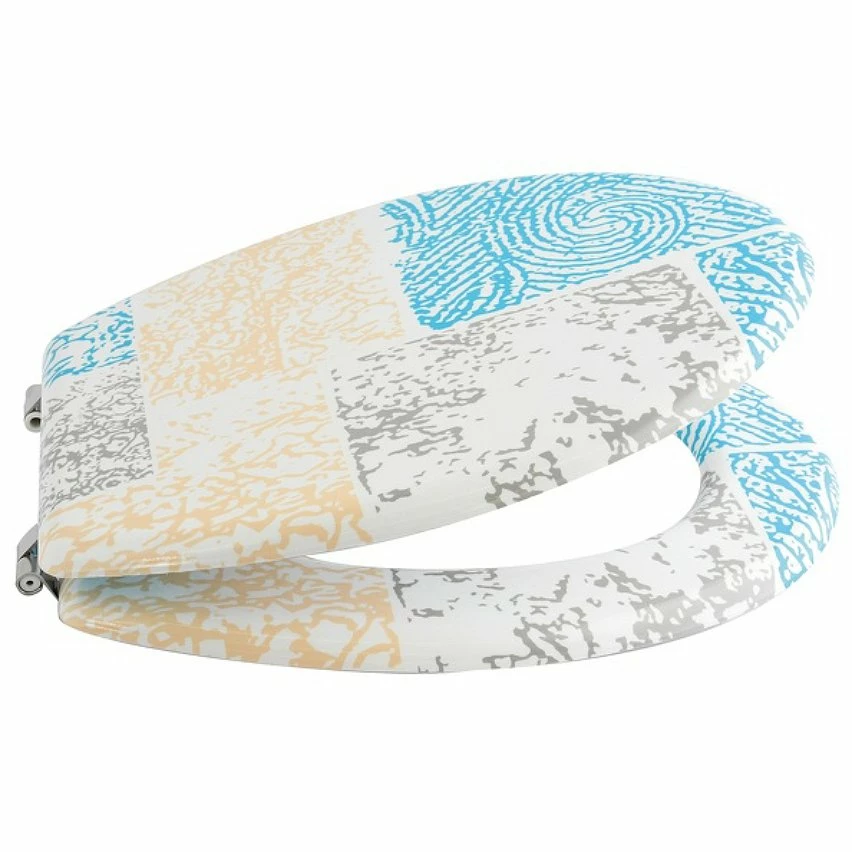 Meilleure affaire 🔥 MSV Abattant WC MDF HUELLAS Beige & Bleu – Charnières Inox 🥰