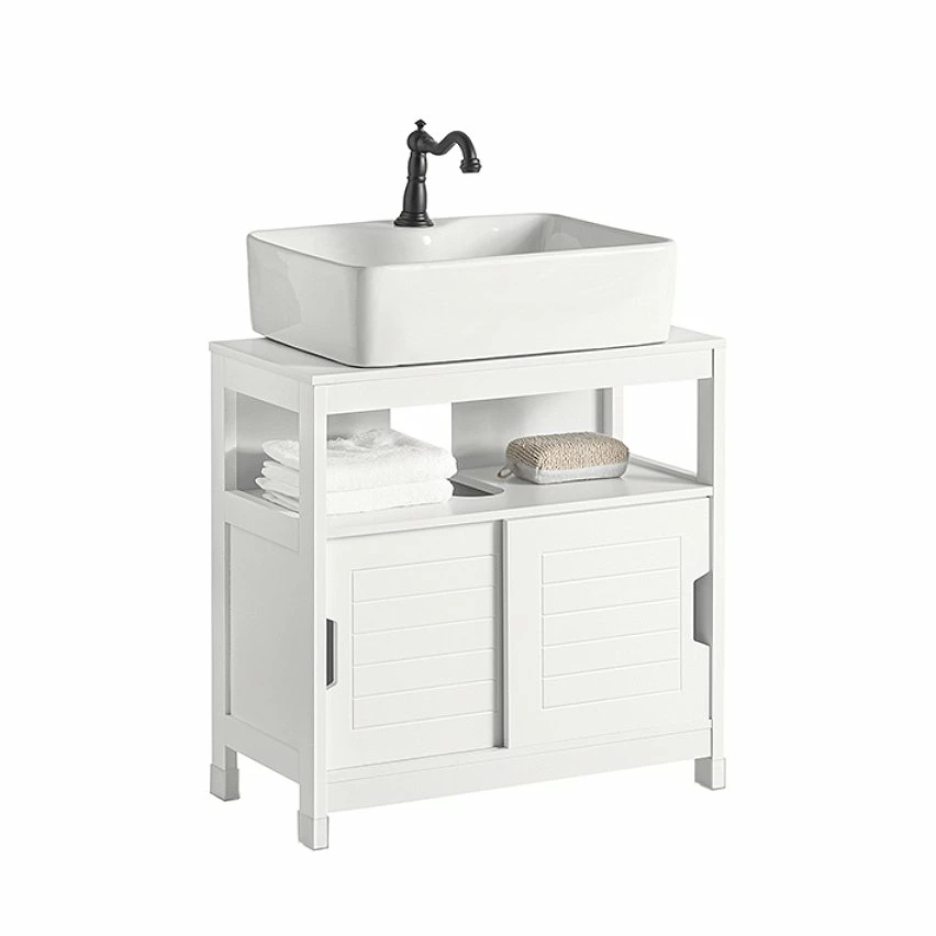 SoBuy FRG128-W Meuble Sous-Lavabo Meuble de Salle de Bain Vasque – 1 étage et 2 Portes coulissantes -Blanc
