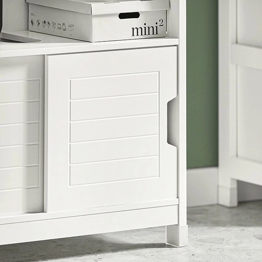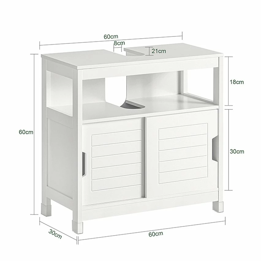 Ce meuble se glisse sous un lavabo ou un évier avec 1 étage et 2 portes coulissantes, pour un rangement optimal.