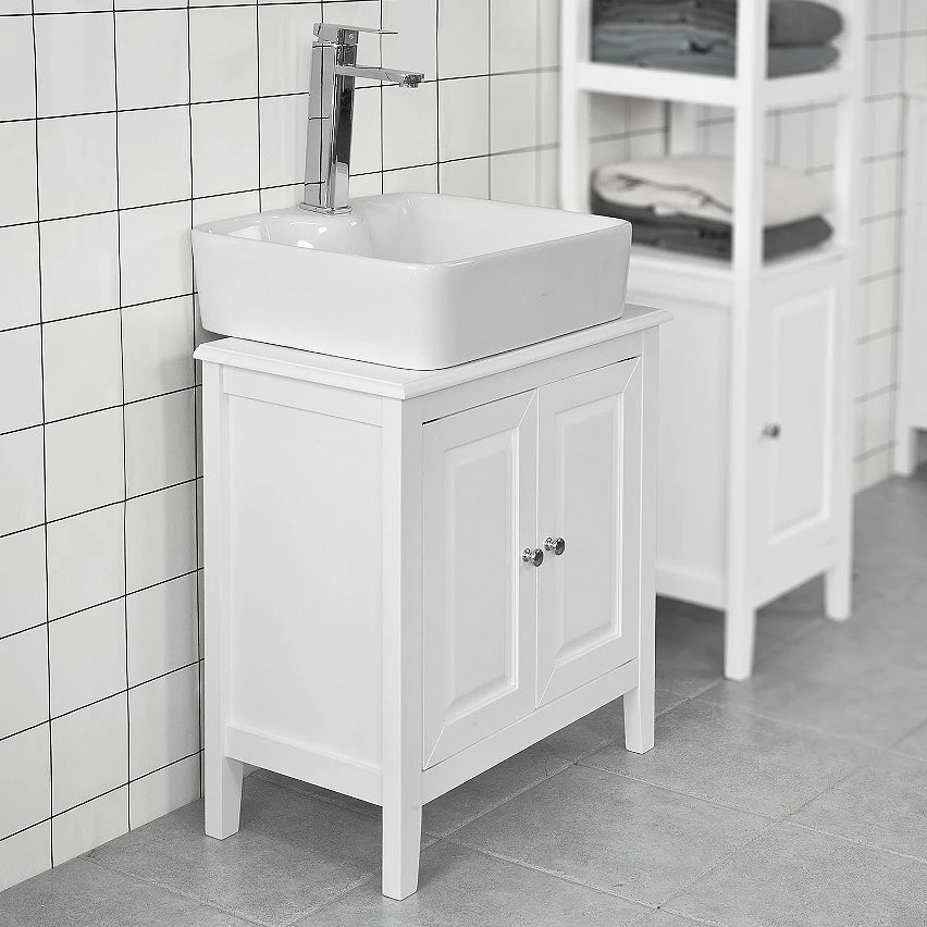 SoBuy FRG202-W Meuble Sous-Lavabo à 2 étages et 2 portes -Blanc