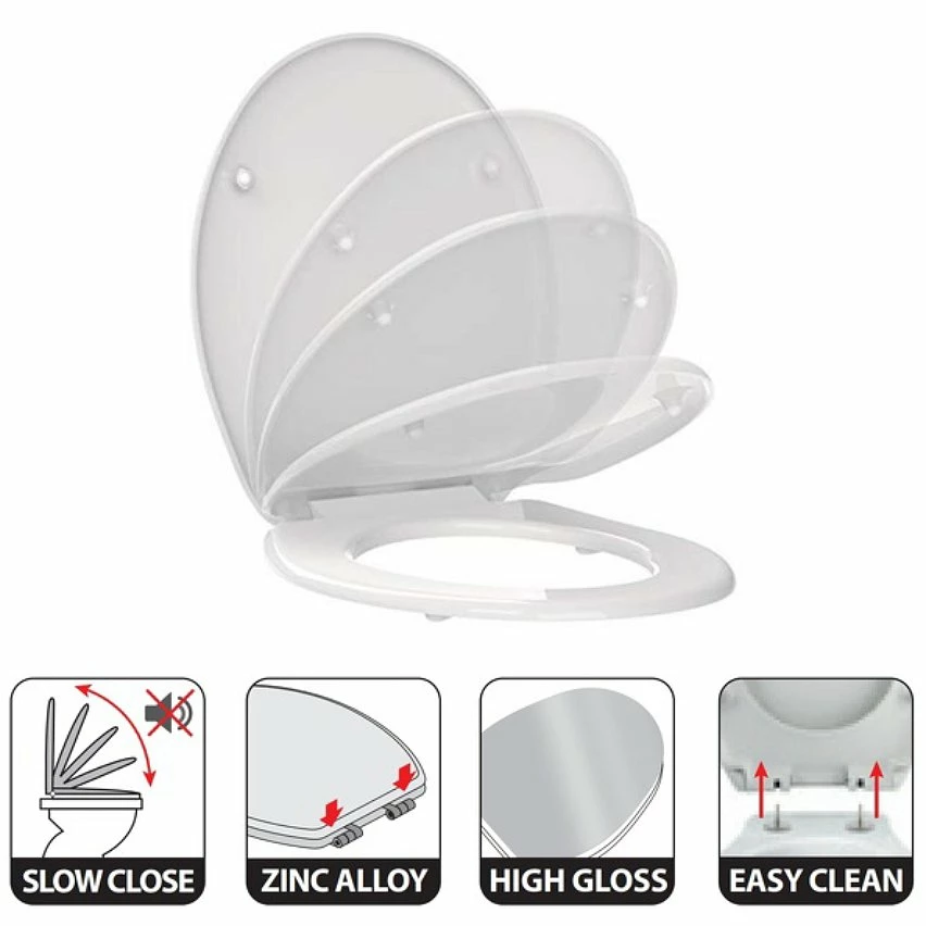 Abattant Wc de la marque Spirella. HAUTE QUALITÉ: En matière Polypropylène avec charnières en zinc. La finition de haute qualité du siège Wc garantit une grande stabilité et une longue durée de vie. MÉCANISME FERMETURE LENTE: Avec cet abattant, finit les bruits dérangeants et les claquements. L’abattant Wc est doté d’un mécanisme de frein de chute en douceur intégré pour une fermeture silencieuse du couvercle. EASY CLIP: Sa surface lisse et son system Easy clip facilitent considérablement le nettoyage du siège, il suffit de clipser pour le fixer, déclipser pour nettoyer et le tour et joué ! FINITION HIGH GLOSS: Donnez à votre salle de bain non seulement un confort parfait, mais aussi une ambiance classique et élégante. INFORMATION PRODUIT: Dimensions: 44×37,5cm Couleur: Blanc Matière: PP & Zinc
