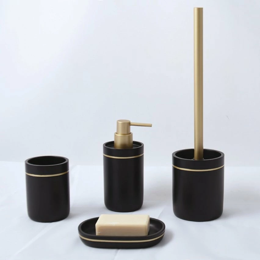 Bon marché 👍 Spirella Brosse Wc avec support Polyrésine BLY Noir & Doré 🥰