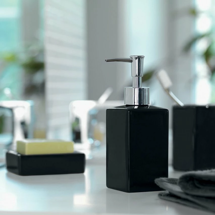 Porte-savon de la marque Spirella. Élégant et pratique, le porte savon de la gamme QUADRO permet de maintenir un savon au propre tout en rajoutant une touche de modernité et de raffinement. La forme du support permet d’avoir accès facilement au savon. Particulièrement robuste et facile à nettoyer, sa matière garantit une longue durée de vie. S’adapte aux autres accessoires de salle de bain de la même série. Dimensions: 11x8x35cm Couleur: Noir Matière: Céramique