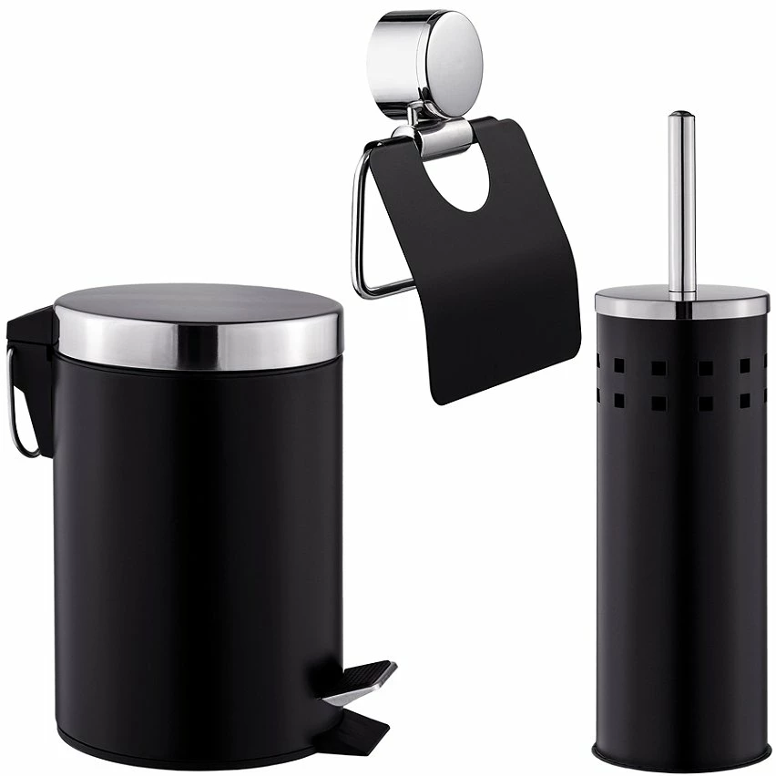 Set de Salle de Bain Toilettes WC Design 3 Pièces : 1 Poubelle, 1 Balayette Brosse, 1 Dérouleur de papier toilette Noir TECTAKE. Design moderne. Ce set de salle de bain ou de toilette apporte une belle touche de design dans vos toilettes, il allie à merveille l’élégance et le fonctionnel.