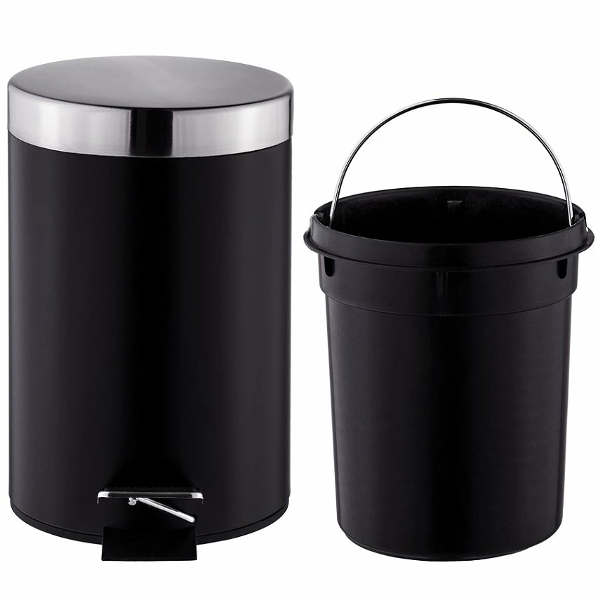 - Matériaux : – Poubelle : Métal laqué. – Récipient intérieur : Plastique.